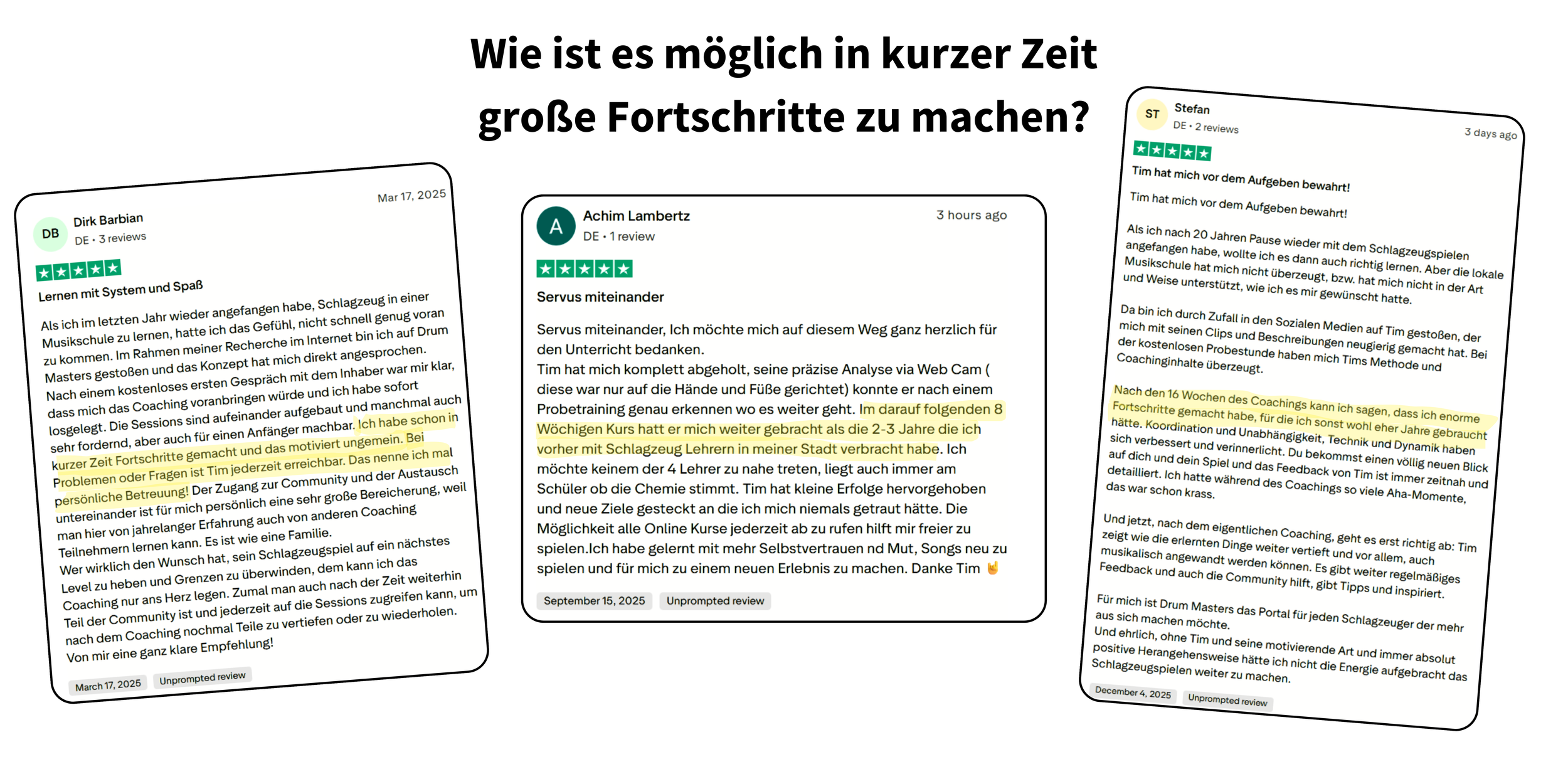 Die Erfahrung aus über 15 Jahren und mehr als 300 begleiteten Drummern hilft mir, auch online exakt zu analysieren, was du brauchst – und wie du wirklich weiterkommst.